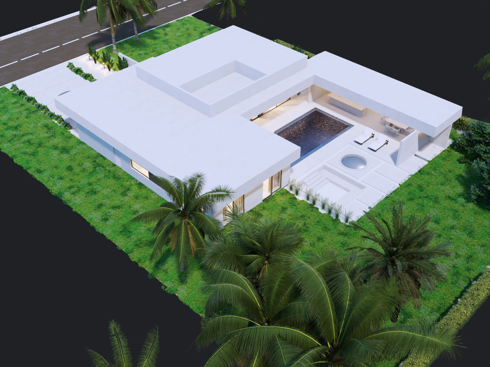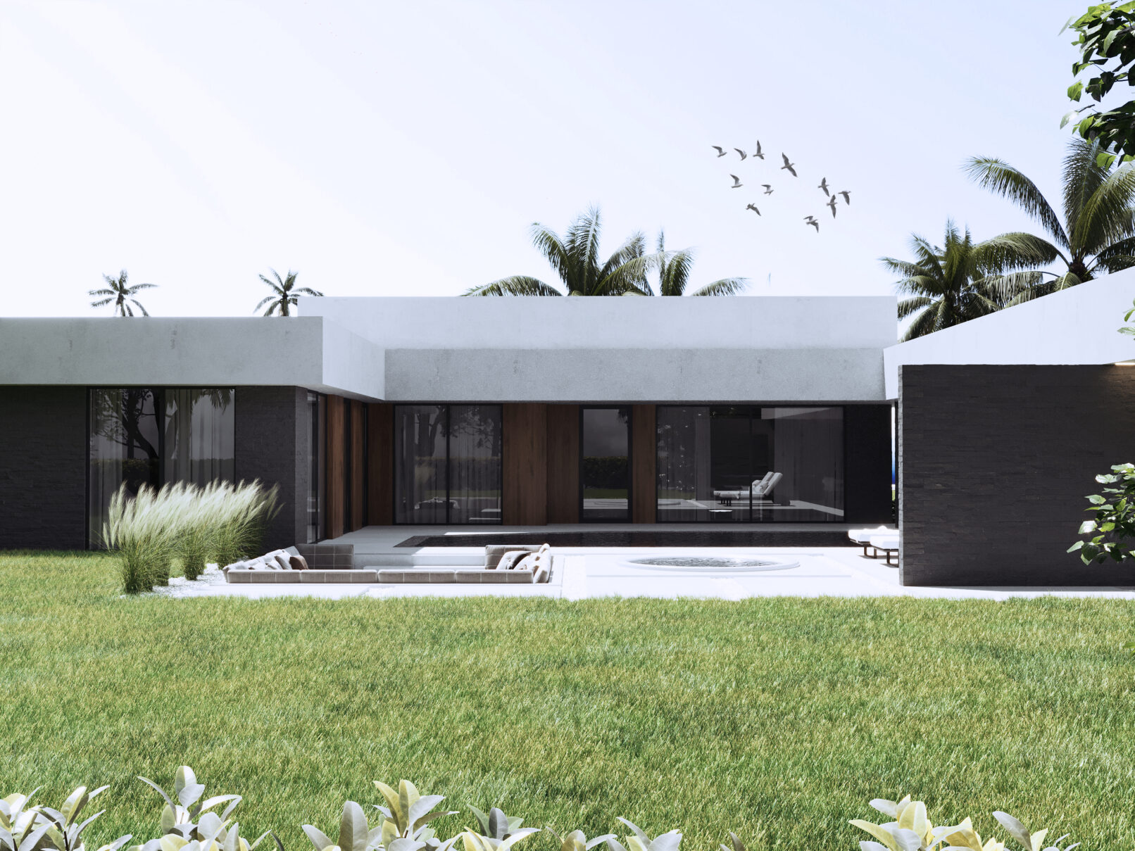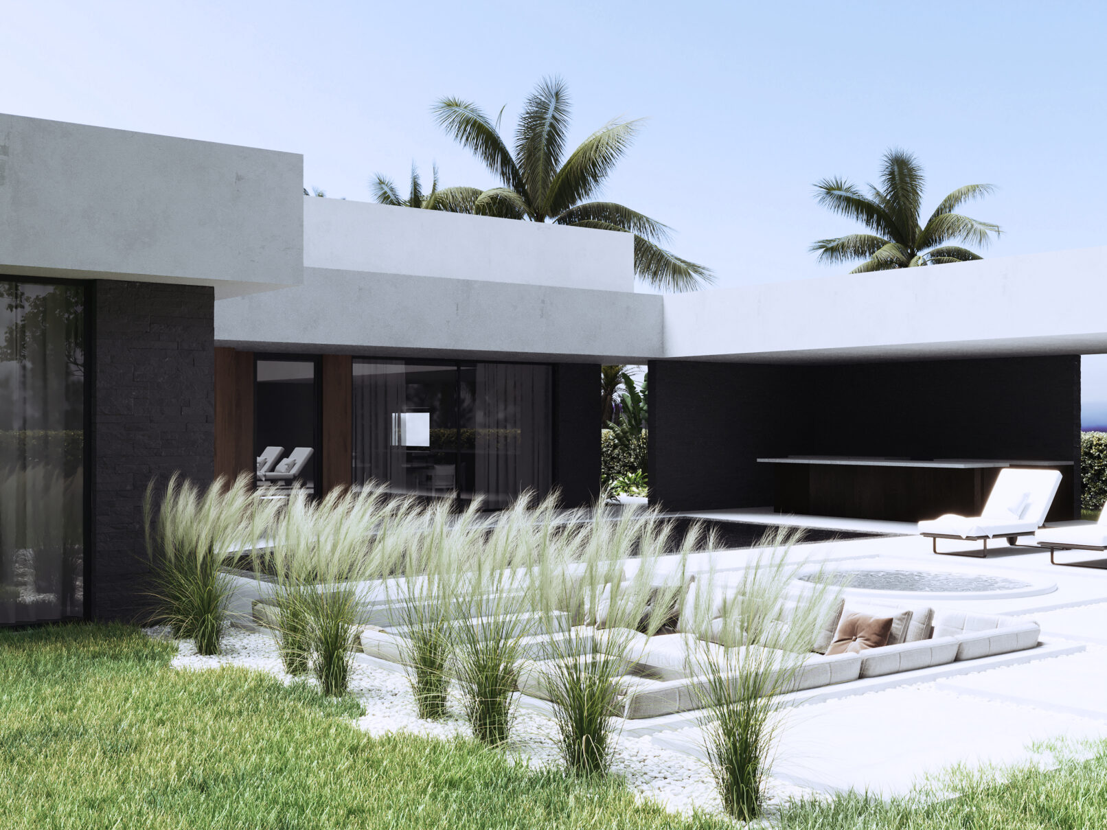 Każdy detal został zaprojektowany z myślą o komforcie życia i nowoczesnej estetyce. Duże przeszklenia otworzyły wnętrza na otaczającą przyrodę, wprowadzając naturalne światło i łącząc dom z jego tropikalnym otoczeniem. Dodatkowo, zaprojektowaliśmy nowy układ funkcjonalny wnętrz, który odpowiada na potrzeby nowoczesnej rodziny, oferując przestronne, otwarte strefy dzienne oraz bardziej intymne, prywatne przestrzenie.